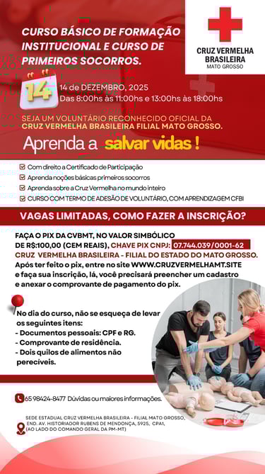 A Cruz Vermelha Brasileira oferece cursos e apoio em situações de emergência e catástrofes.
